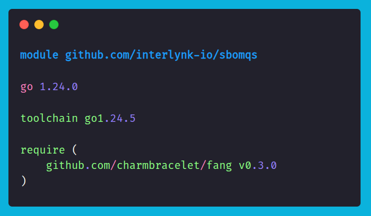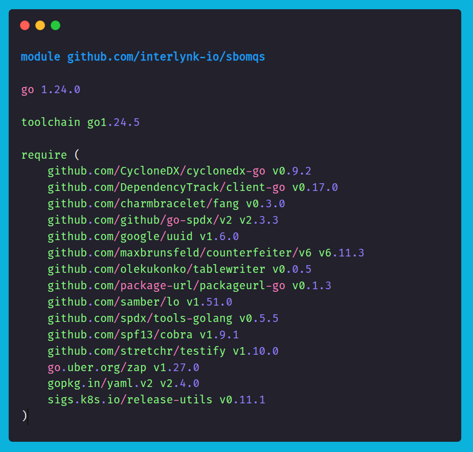 For example, in a Go project, if your go.mod(sbomqs) says: